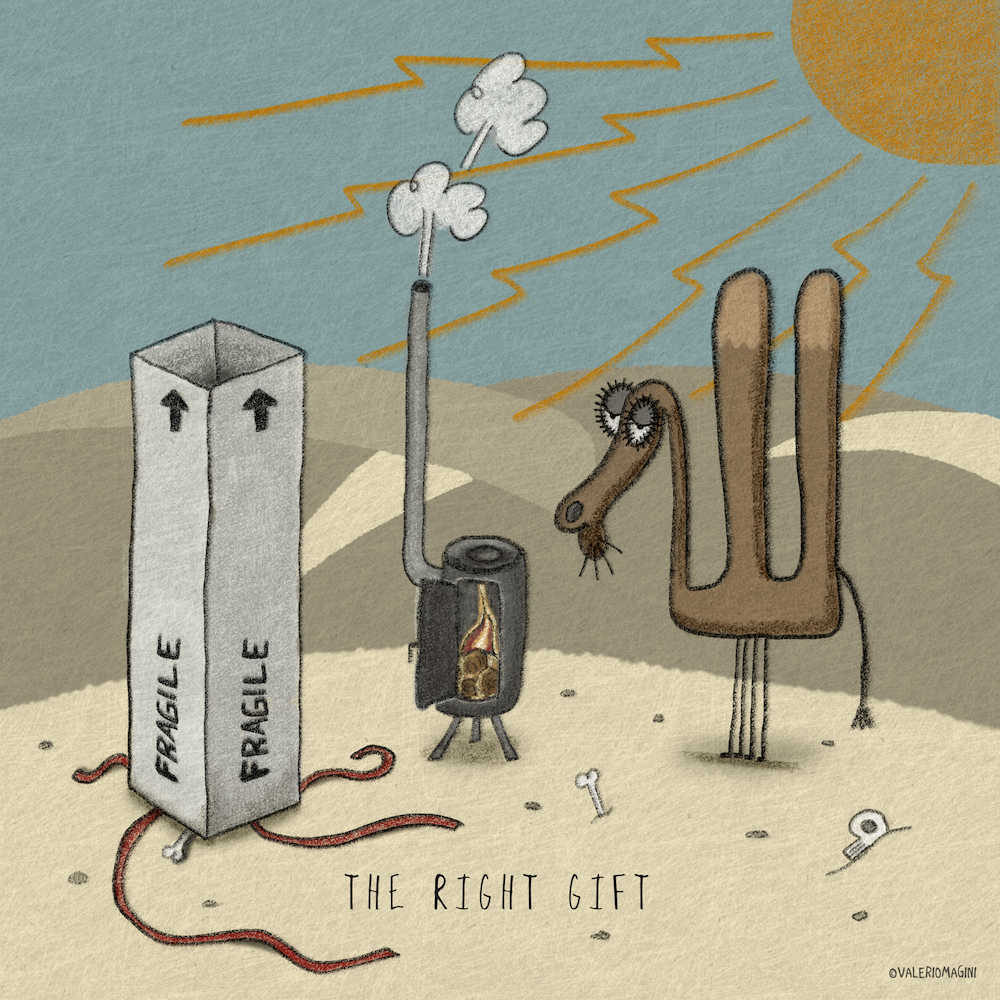 The Right Gift è una serie di illustrazioni che riflette, con ironia e delicatezza, sul gesto del donare.