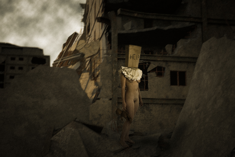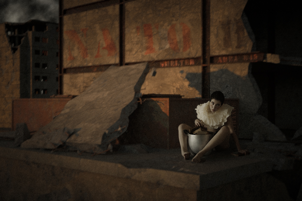 Il Magini usa il linguaggio che gli è proprio, una "mise en scene" dove il dramma dei dimenticati si mostra su un palcoscenico devastato da che? Dalla guerra, dalla fame, dall'impoverimento delle risorse del cuore, quelle risorse che rimangono parole al vento ma che non sono in grado di togliere dall'apatia quell' umanità che recita come un mesto Pierrot nel boccascena mediatico, sempre più disatteso e messo in ombra dal susseguirsi di emergenze che diventano grigia abitudine.