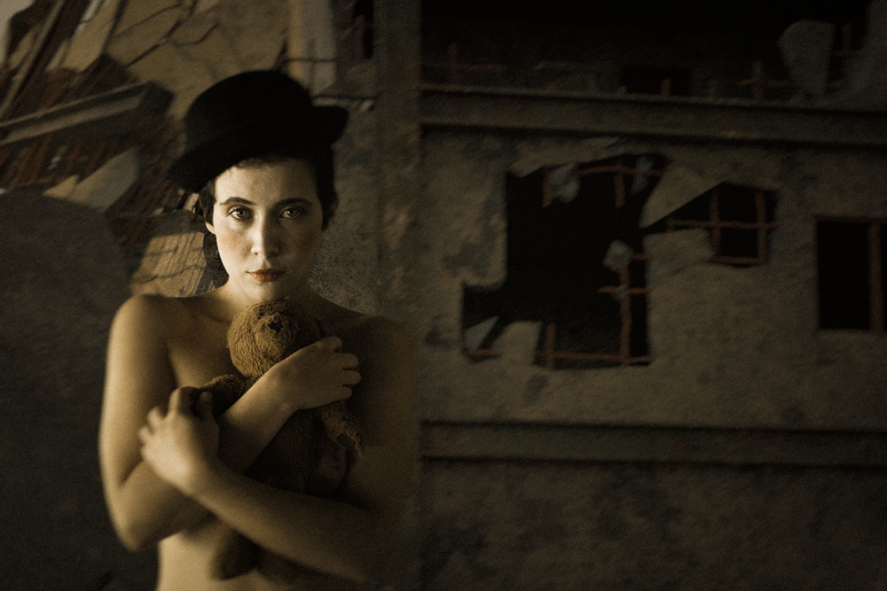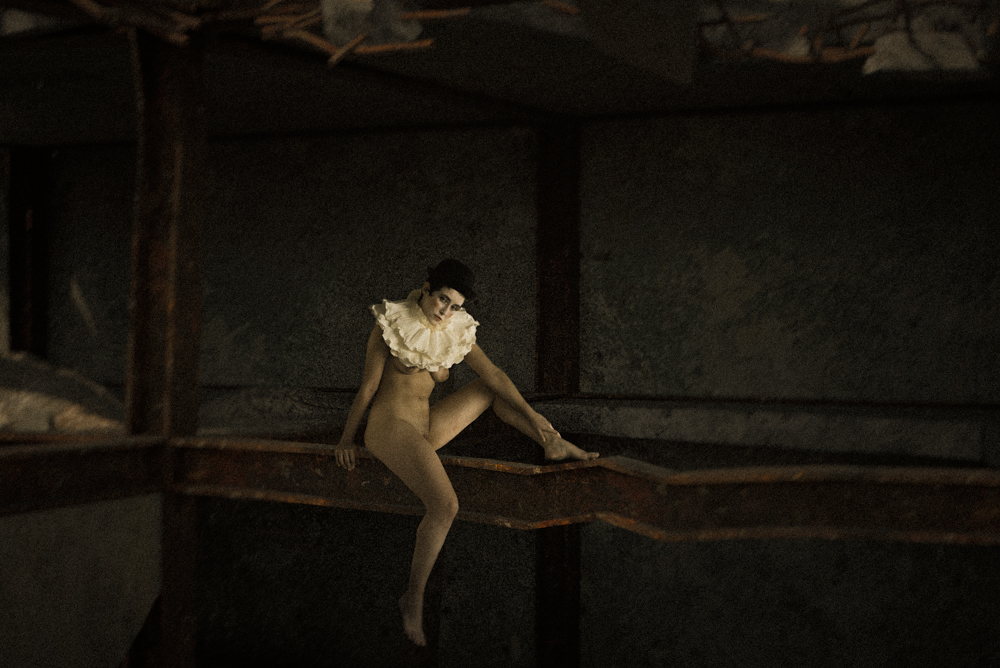Valerio conosce il dolore del mondo e ce lo presenta con discrezione, attraverso una figura fragile e i simboli del gioco, del cibo, del luogo affidati a un angelo senza ali che si muove smarrito sui fondali silenziosi di luoghi dove la vita ha ceduto il posto alla rovina.