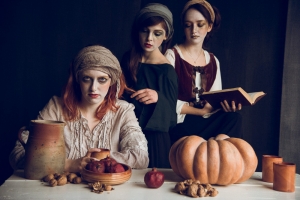 I Fiamminghi (The Flemings perché fino all'ultimo momento ho pensato di lasciarlo in inglese...) è un lavoro che si ispira all’arte fiamminga: una luce radente che filtra nell’ambiente facendo risplendere le tenui tonalità dei marroni, dei rossi, dei verdi, tre interpreti impegnate nella vita di tutti i giorni, o meglio nella ricostruzione di momenti inerenti il pasto, il bagno, la lettura.