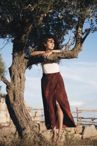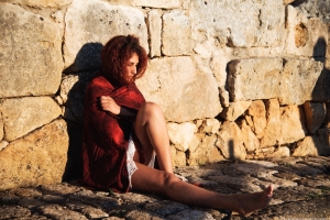 Una giovane donna guarda lontano, oltre la terra e le strade di pietra c'è il mare. Una volta quei muri erano “casa”, ora sono solo il rifugio di anime solitarie.