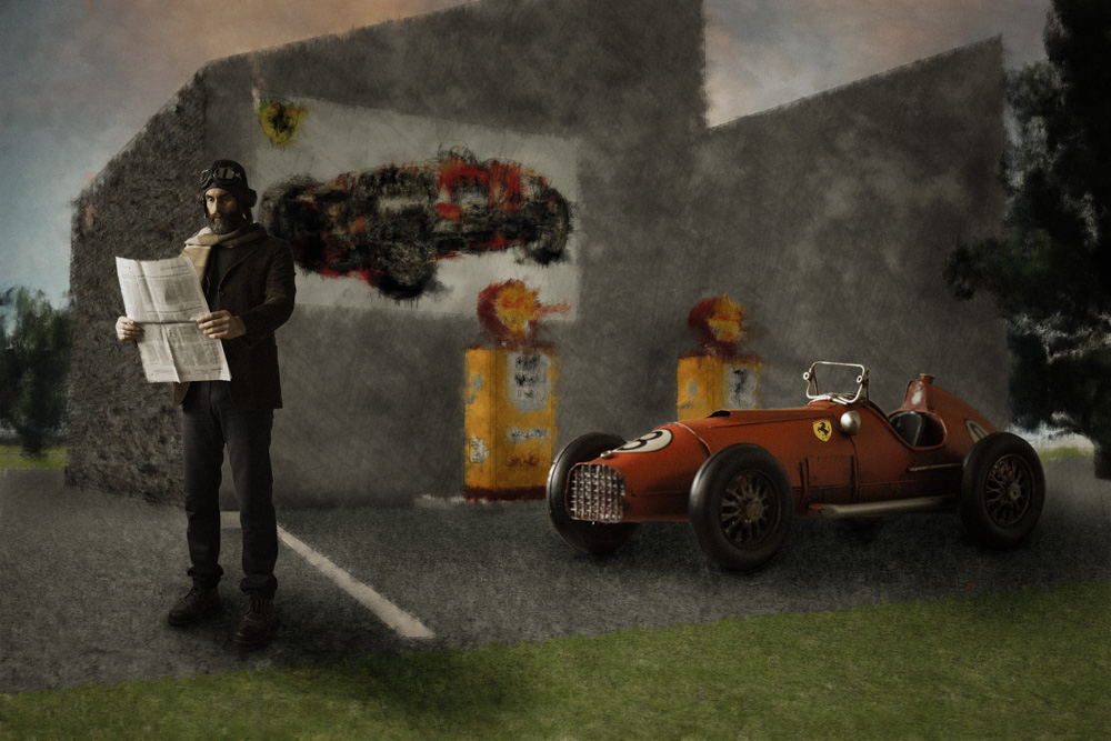 MILLE MIGLIA: fotografia con tecnica mista - Fondali dipinti dall'autore – Anno: 2020